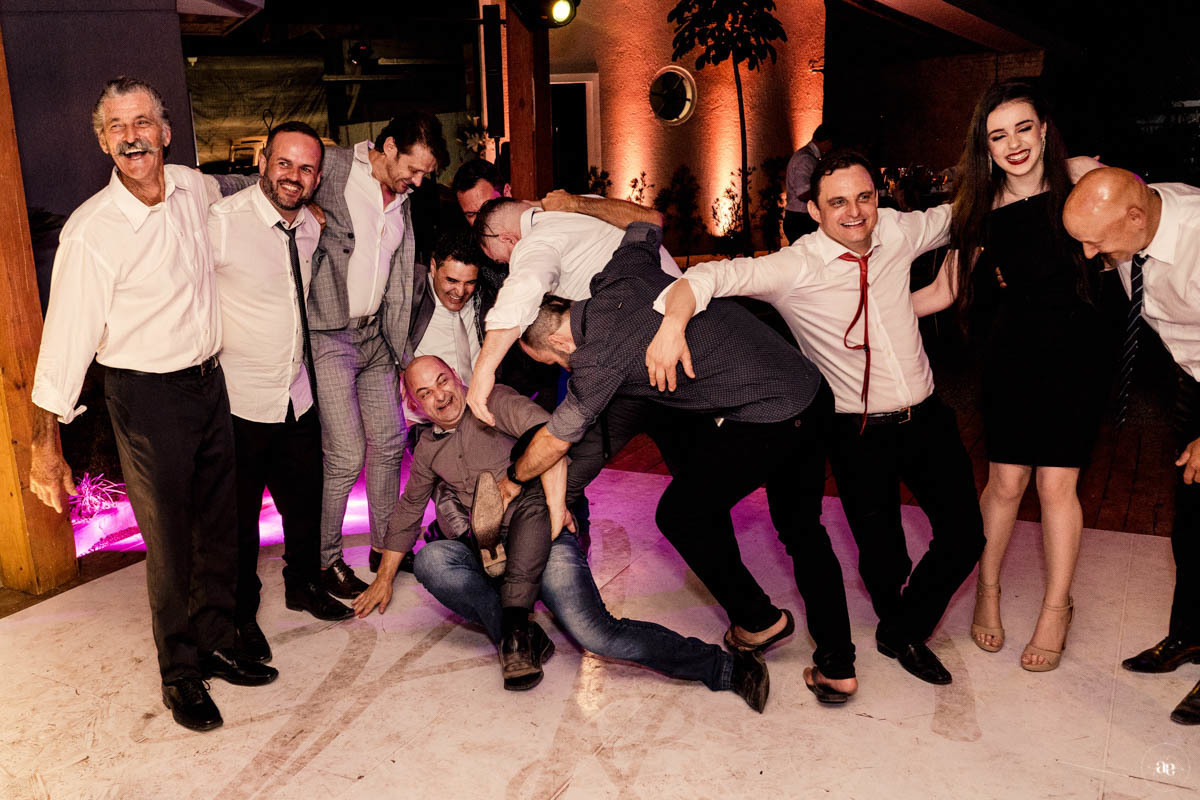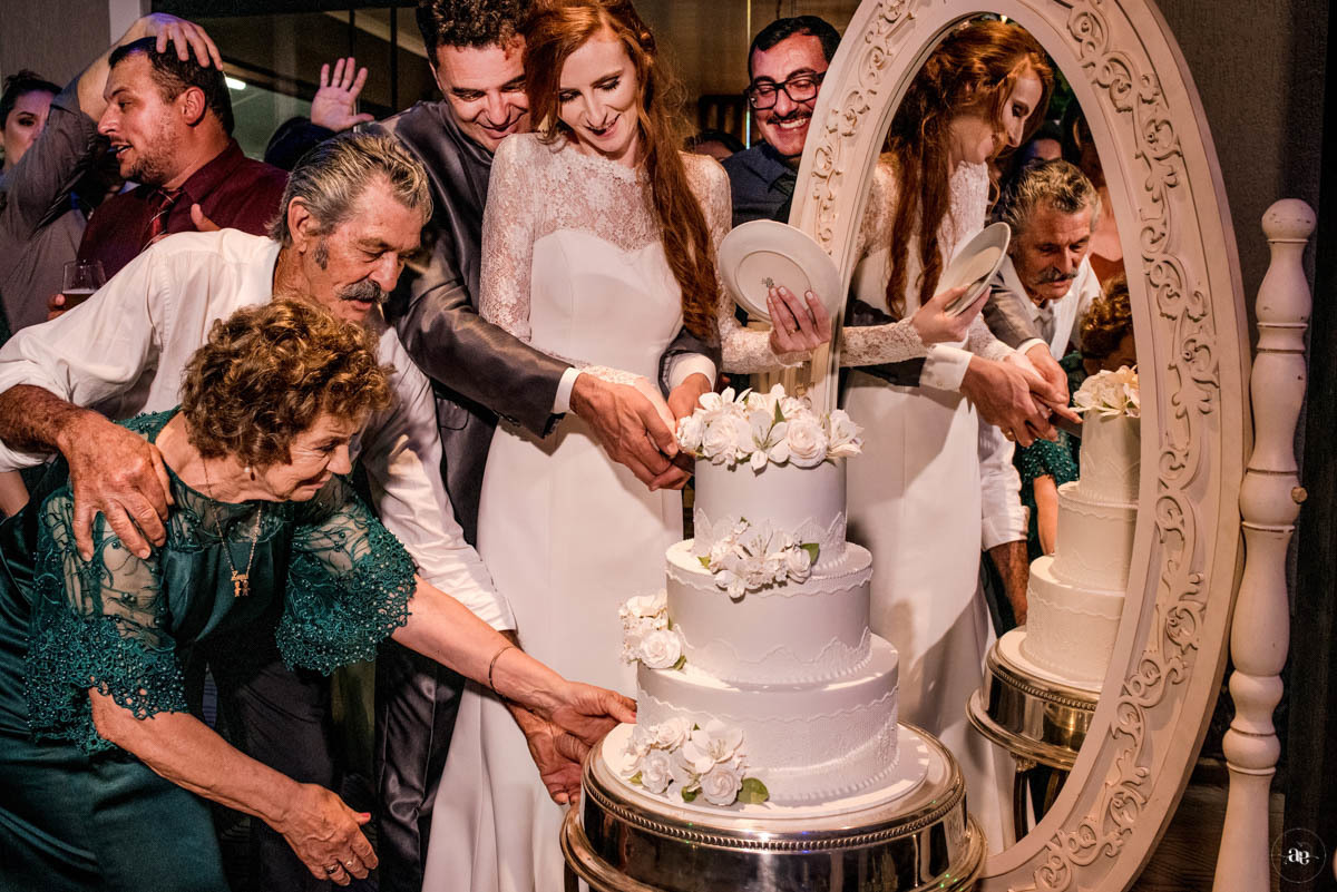repleto de amigos celebrando um amor paciente, que nunca deixou de desejar